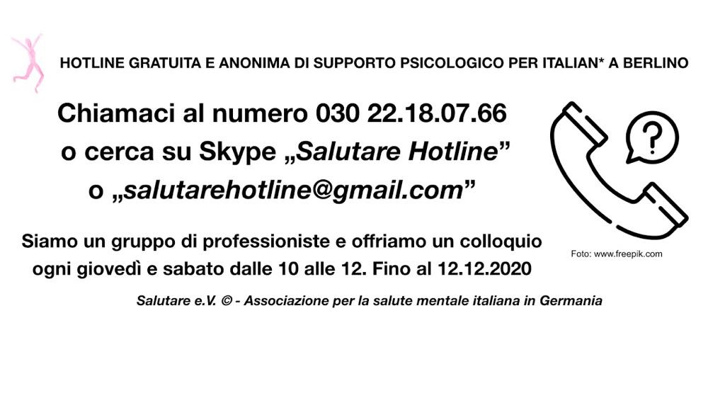 NEWS // Prolungata fino al 12 dicembre 2020 la nostra Hotline di supporto psicologico gratuito in italiano a Berlino e Brandeburgo